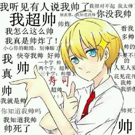 我听见有人说我帅了我很对不起我太帅我超帅别羡慕,我知道我帅你没我帅帅炸我怎么这么帅看我我真是帅炸了!多帅小心你的眼睛,别帅瞎了帅的快夸我帅好表情包