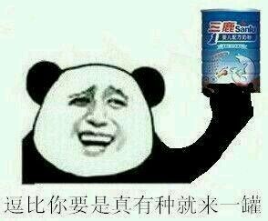 逗比你要是真有种就来一罐(左手举着一罐三鹿奶粉-熊猫头造型)