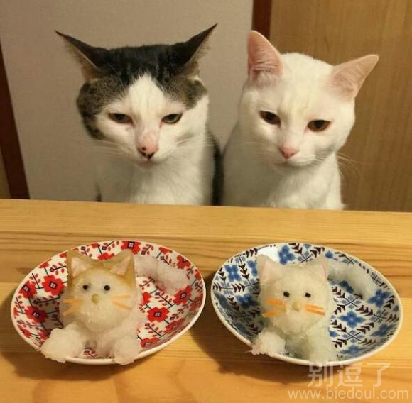 主页 > 搞笑图片 > 准备吃饭的两只猫咪。