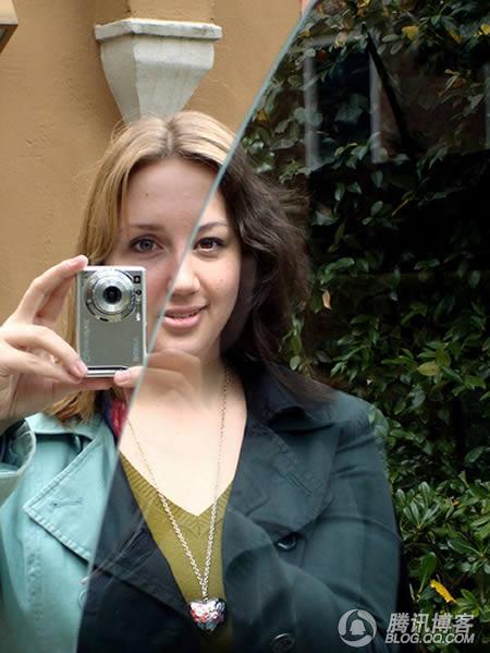 5.左手边是一面镜子,右手边是一面透明的玻璃,两位女孩恰好站在两边。