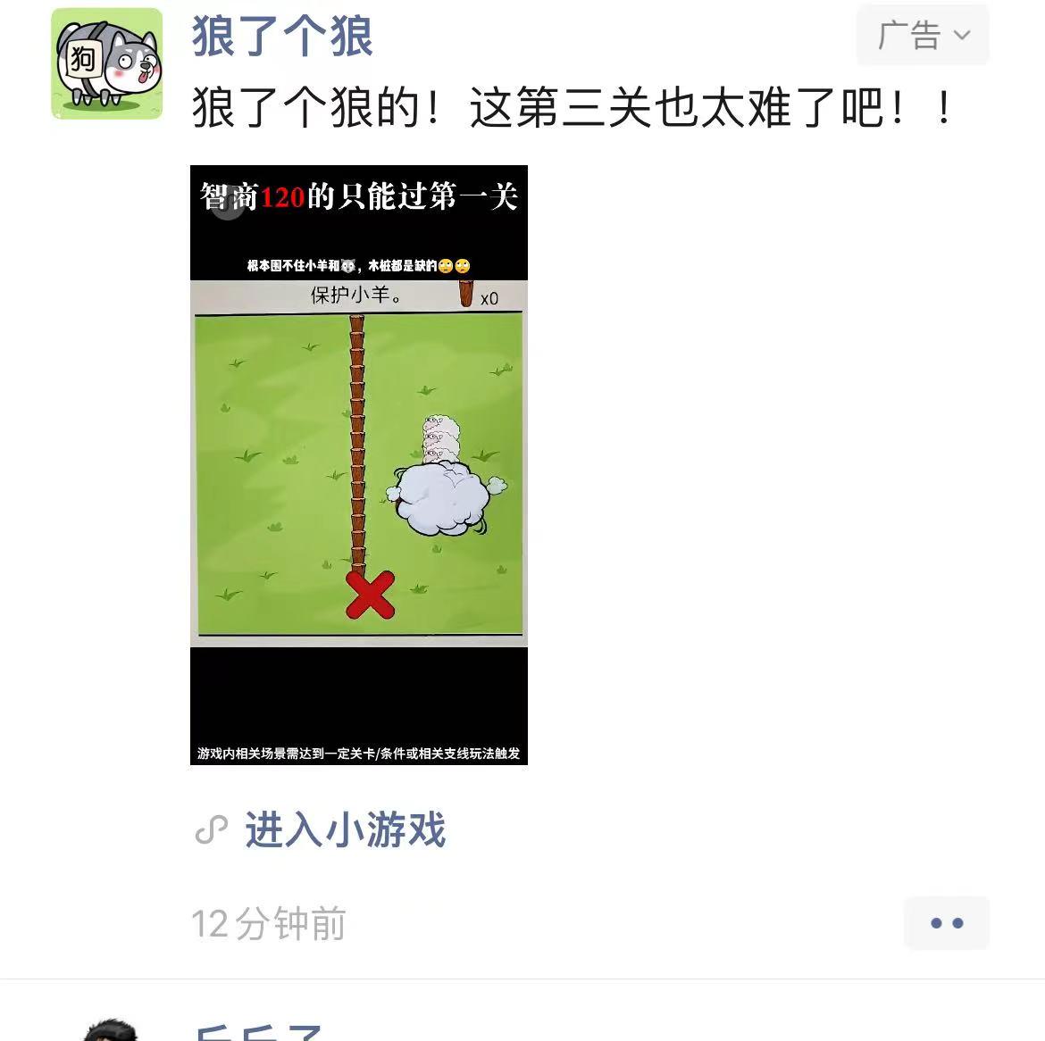 羊了个羊还没玩明白,狼了个狼都开始打广告了。