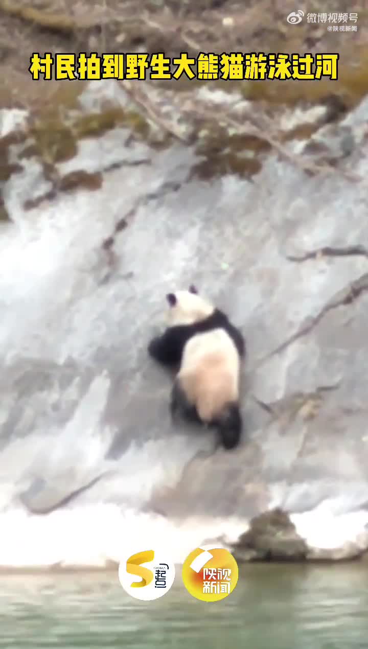 2022年2月20日下午5时左右,陕西宝鸡太白河镇村民在太白河里,发现了一只正在游泳的大熊猫。