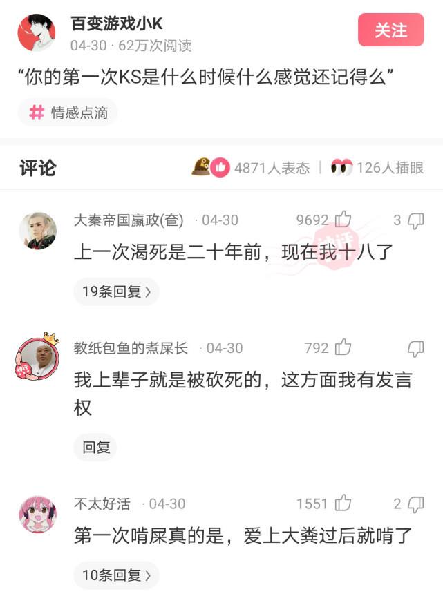 【沙雕问题4】:你的第一次KS是什吗时候什么感觉还记得吗?