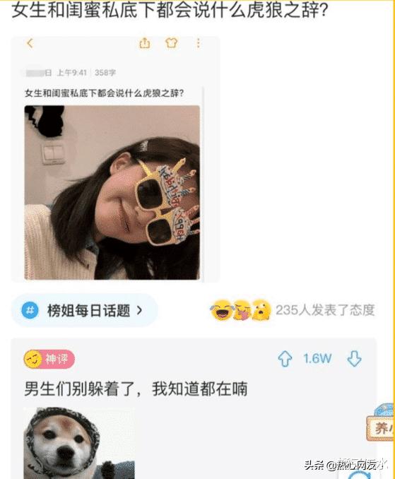 主页 > 神回复 > “女生和闺蜜私底下都会说什么虎狼之词?”哈哈哈男生们别躲着了