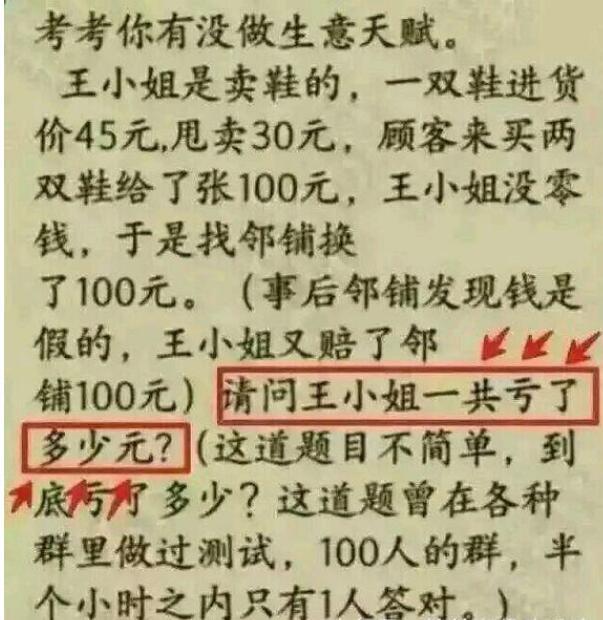 考考你有没有做生意的天赋,王小姐到底亏了多少钱?