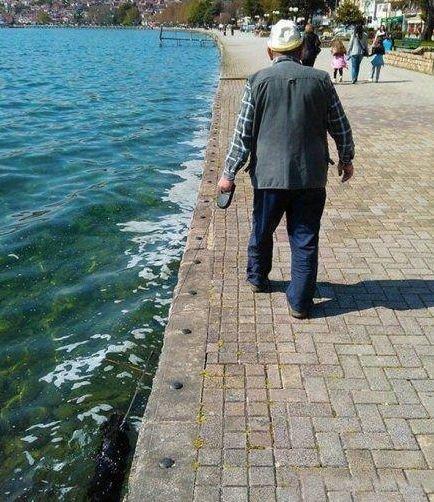 大爷,我有个不好的消息告诉你,你的狗都遛到河里去了...
