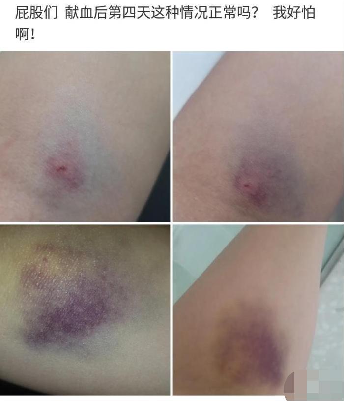 4.“献血之后,手腕就变成这样了!有人知道是啥情况吗?太吓人了!”