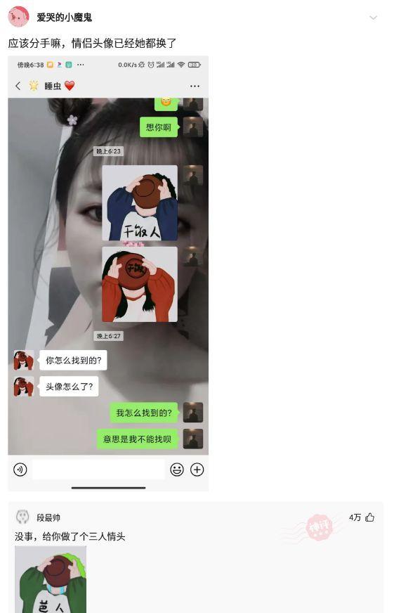 你们说我应该分手嘛,情侣头像已经她都换了。