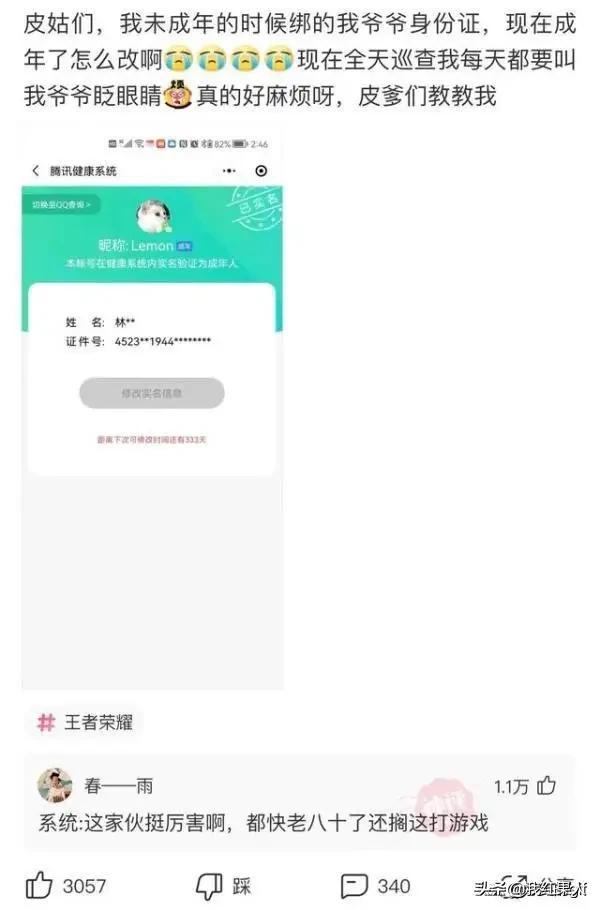 虽然国家禁止未成年人玩游戏,但是好多人借用家里的成年人身份证进行认证玩游戏。