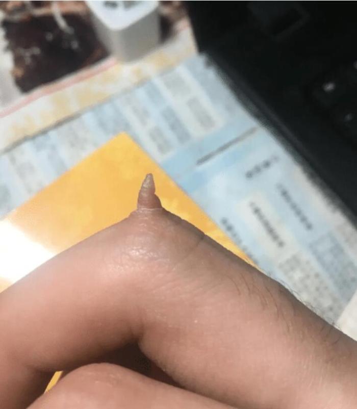 一位网友说:这样的东西长在他的中指上,这长的是什么?小编劝你赶快去医院。
