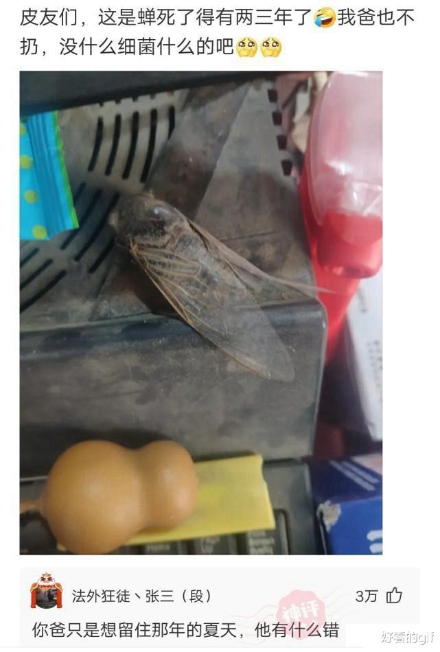 主页 > 神回复 > 神回复:这只蝉死了得有两三年了,我爸也不扔,没什么细菌吧