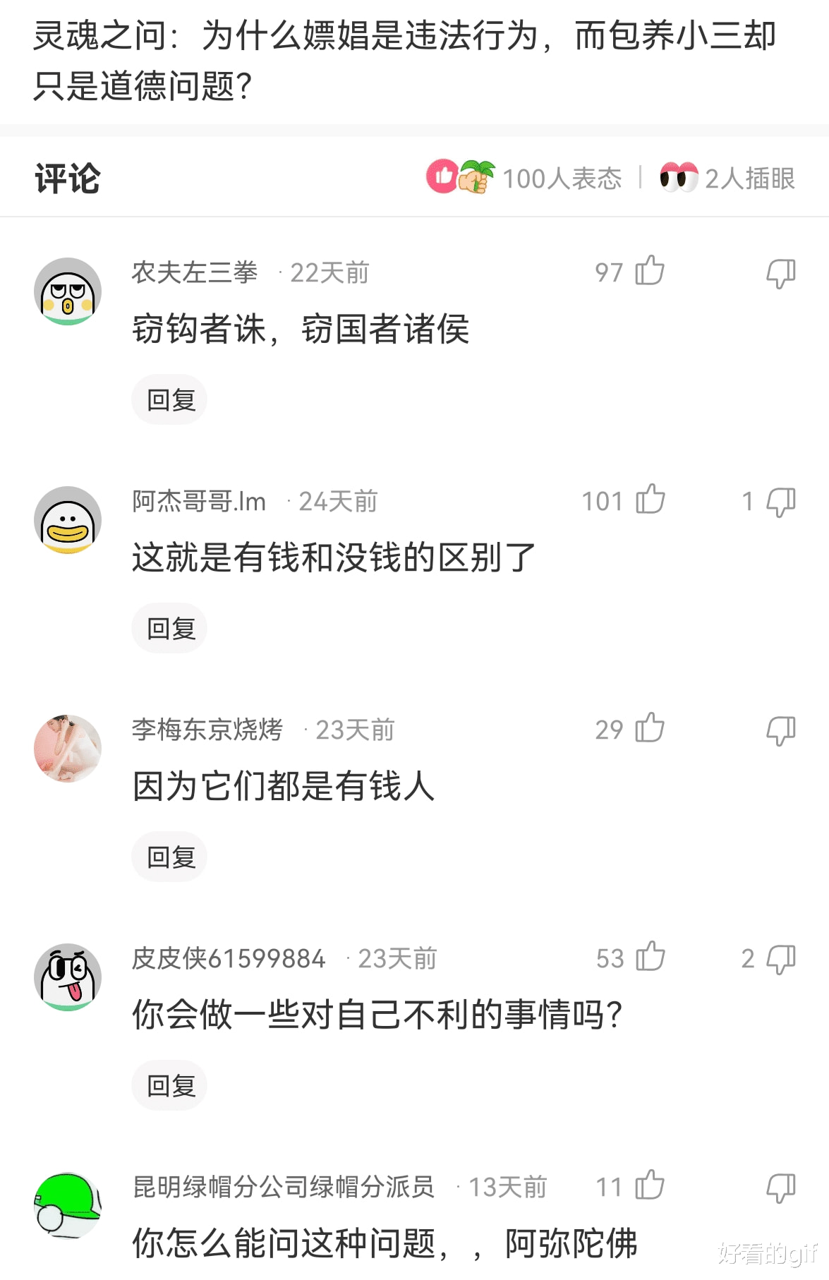 主页 > 神回复 > 神回复:为什么嫖娼是违法行为,而包养小三却是道德问题?