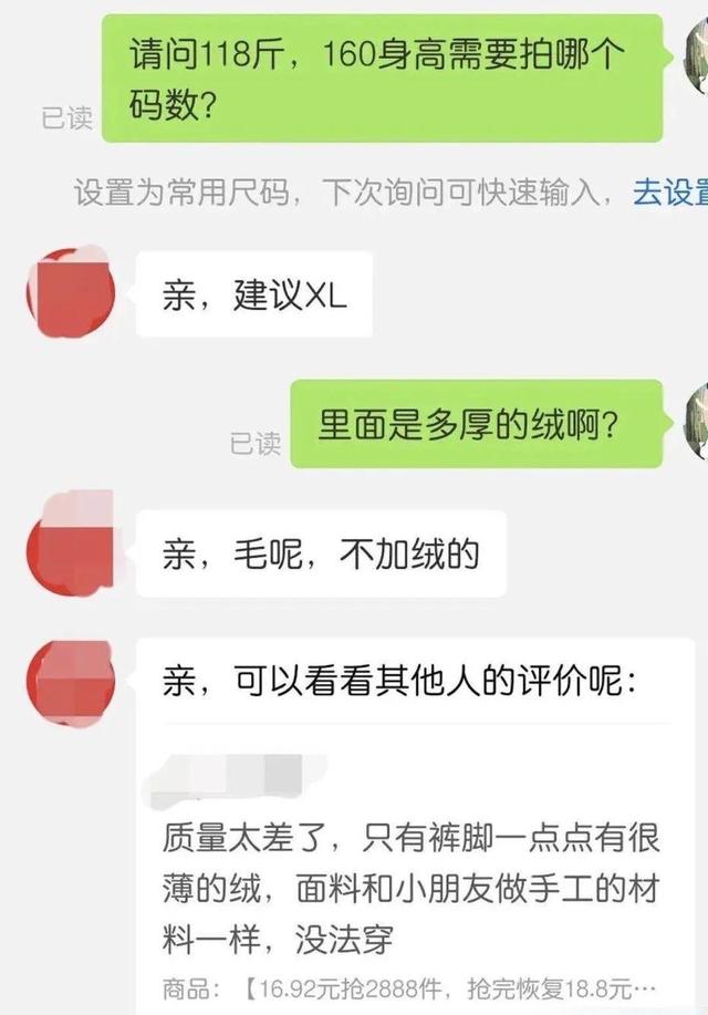 2:在生活中,我们在网上购物的时候,常常会对某件商品不太清楚的时候去询问客服,这不,一位网友向客服询问这件商品的属性时,客服给他推荐的评价,好家伙,来自客服的亲自劝退,哈哈哈