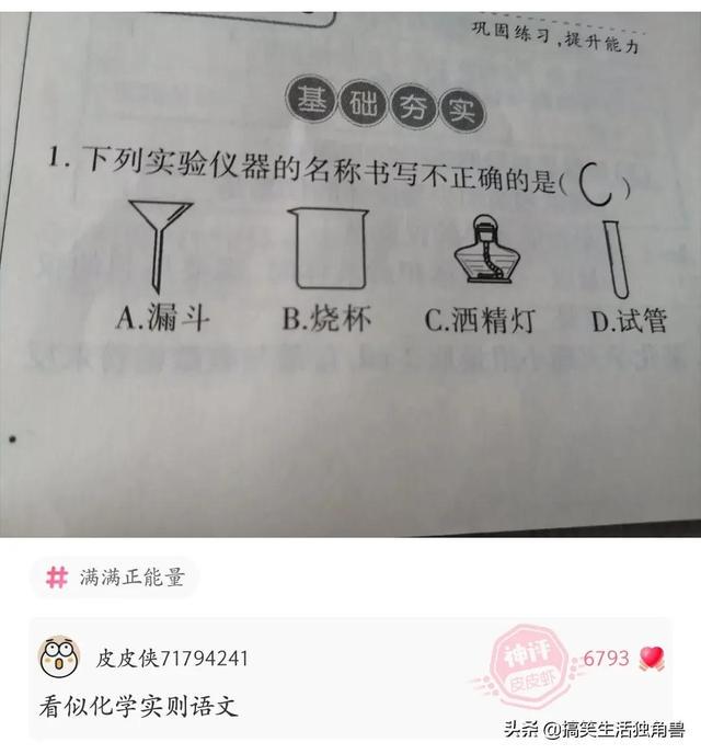 一时之间我竟搞不清出题的到底是语文老师还是化学老师