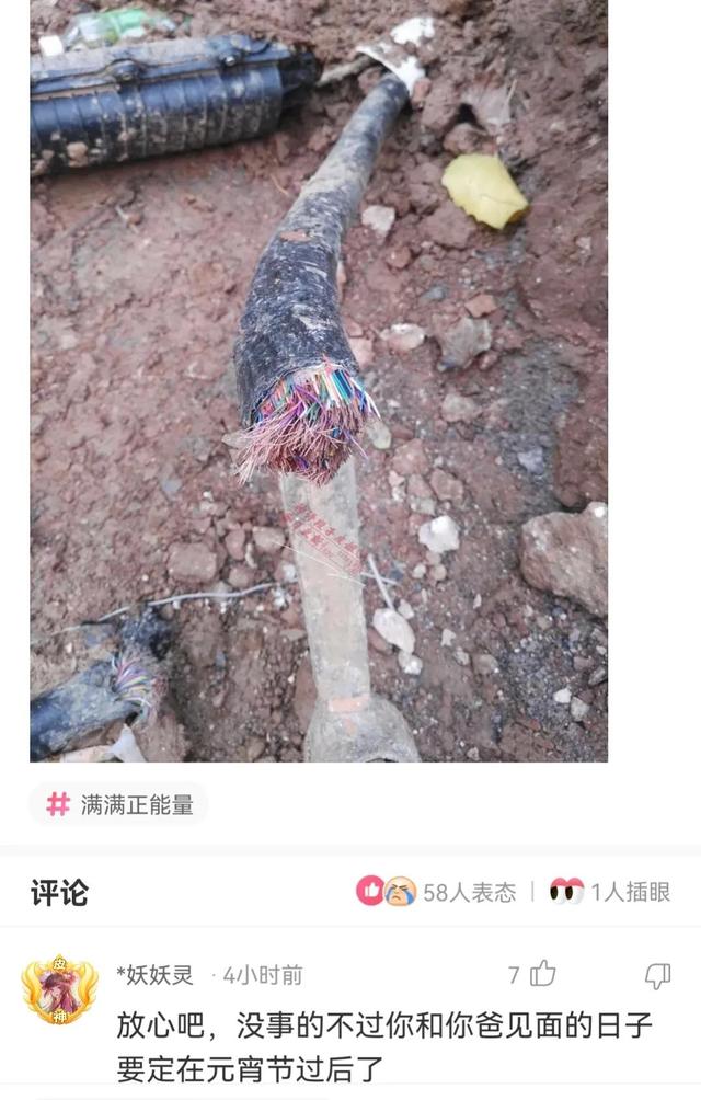 今天我爸在路边挖断的,不是三大运营商的,应该没事吧?