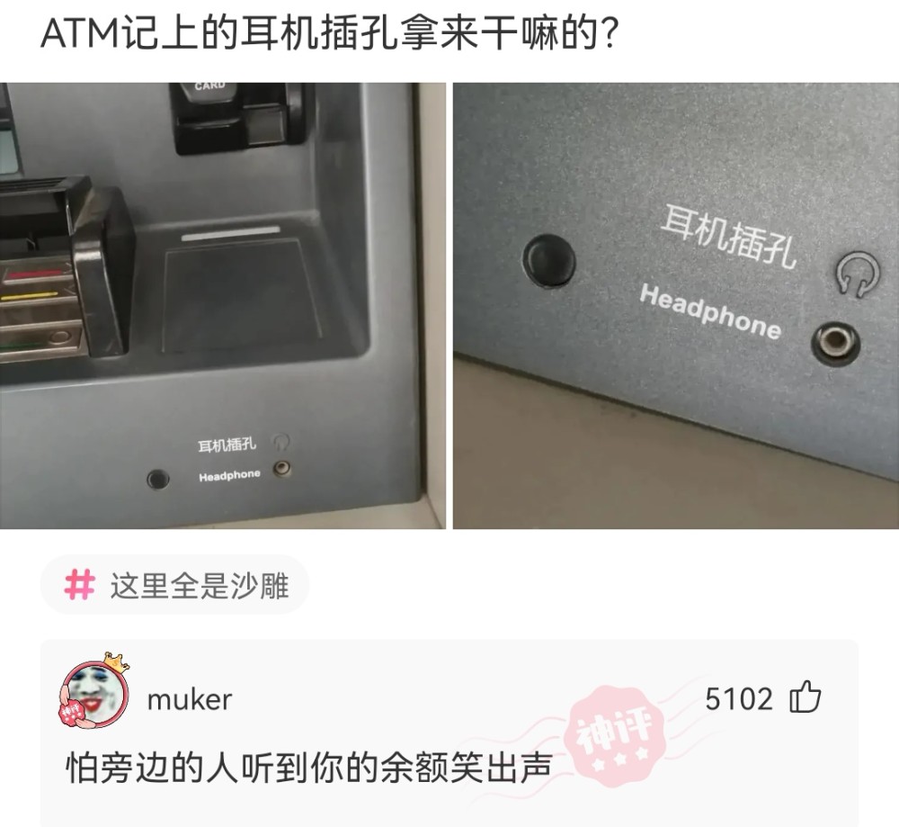 【沙雕问题10】:ATM机上的耳机插孔拿来干嘛用的?