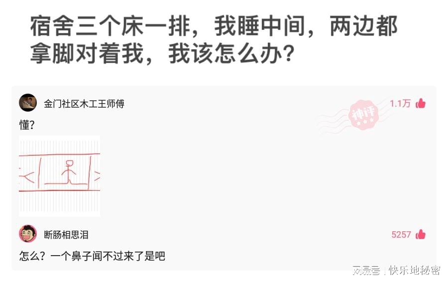 【搞笑神评14】:宿舍三个床一排,我睡中间,两边都拿脚对着我,我该怎么办?