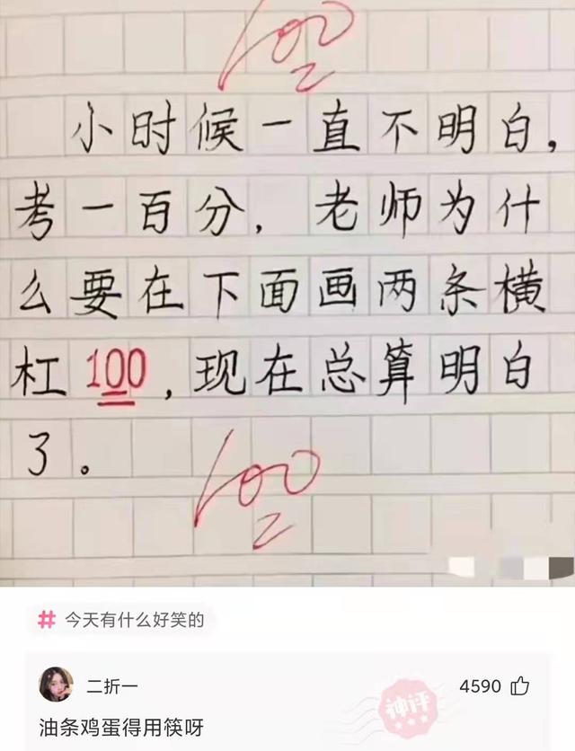 【神回复 7】:小时候一直不明白,考一百分老师为什么要在下面画两条横线