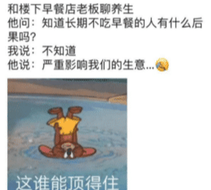 吃早餐的时候和早餐店的老板聊起了不吃早餐的危害,哈哈哈这个老板说的貌似很有道理啊!
