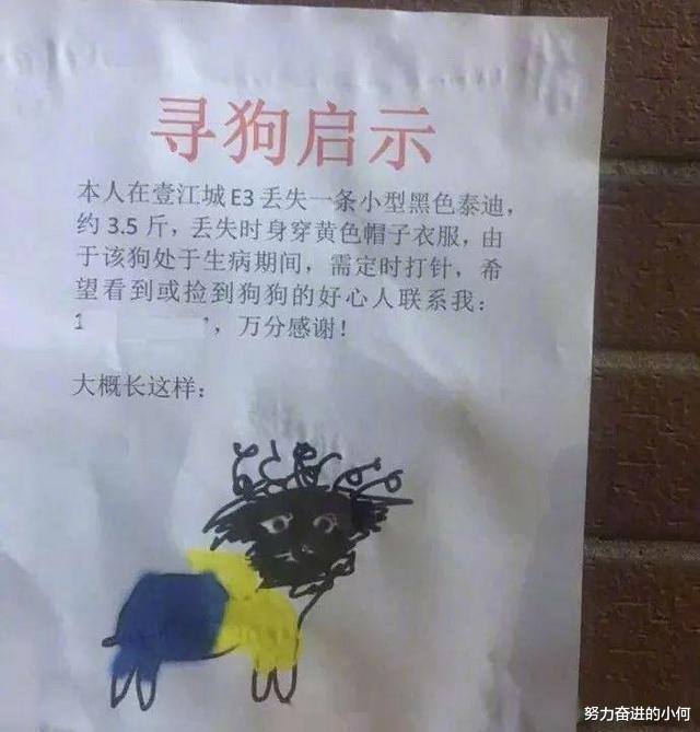 这位铲屎官的寻狗启示有点糊弄人,这画像太敷衍了,看样子并不是那么想找到自家的狗子。