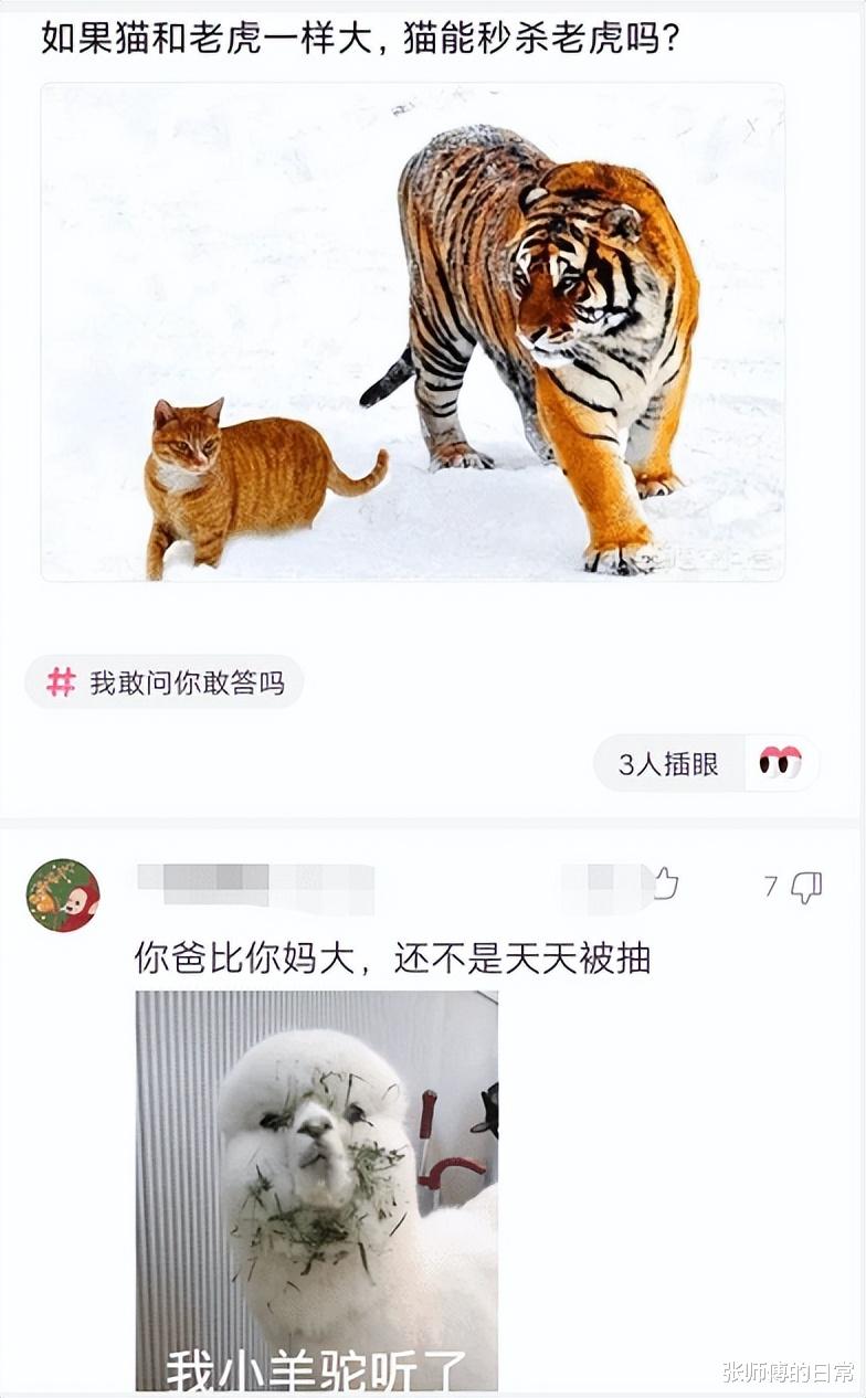 “如果猫和老虎一样大,猫能秒杀老虎吗?”哈哈哈哈网友神比喻~