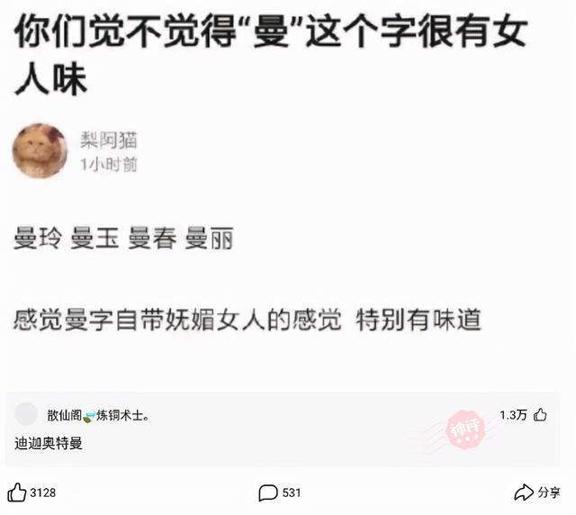 主页 > 神回复 > 神回复:你们觉不觉得“曼”这个字很有女人味