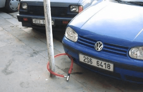 这操作看得小编好迷呀,谁这么有才,竟然在车上挂道锁,估计锁也没有想到自己有一天竟然还能锁汽车....
