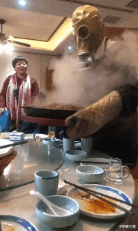 大哥你这哪是上菜啊,你这明明上的是毒气弹,你自己都戴着防毒面具