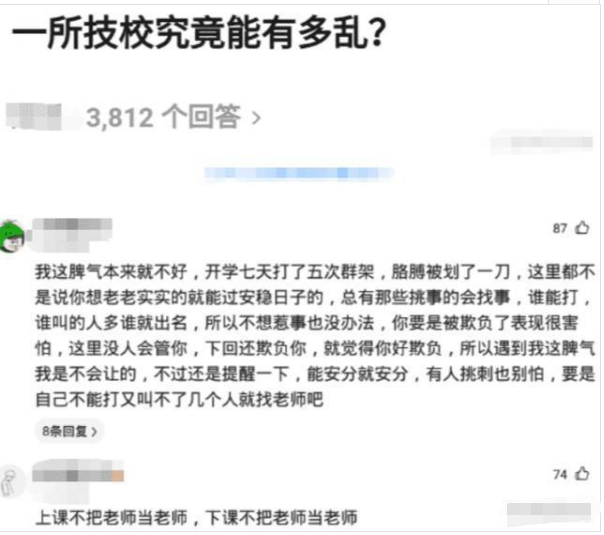 “技校真的有这么乱吗?”网友回复太经典,真是长见识啊