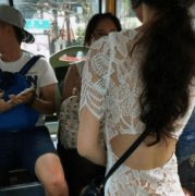 “姑娘心真大,穿成这样坐公交车,搞得车上的乘客都不淡定了!”